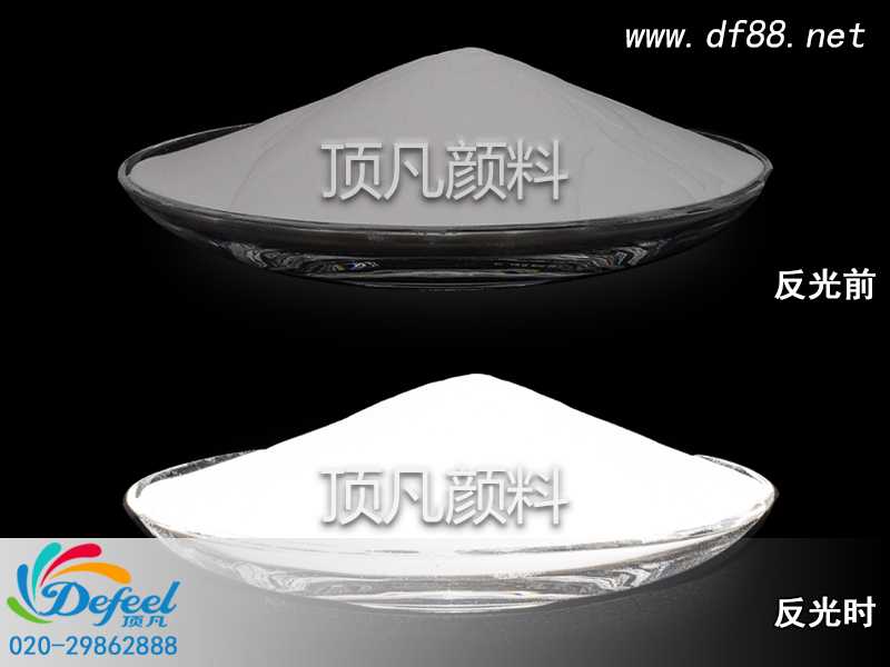 透明反光粉其實就是白色反光粉,色澤是白色,頂凡供應的透明反光粉目數有200~800目。頂凡反光粉具有極強的逆向回歸反射性能,能將95%的光線直接反射回光源處。