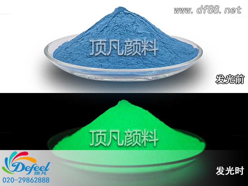 頂凡夜光粉主要有黃綠光夜光粉、白色紅光夜光粉、天藍光夜光粉、白色紫光夜光粉和調色夜光粉。亮處吸收各種可見光10~20分鐘后,即可在夜暗處持續發光12小時以上,其發光亮度和持續時間是傳統硫化鋅夜光材料的30~50倍。